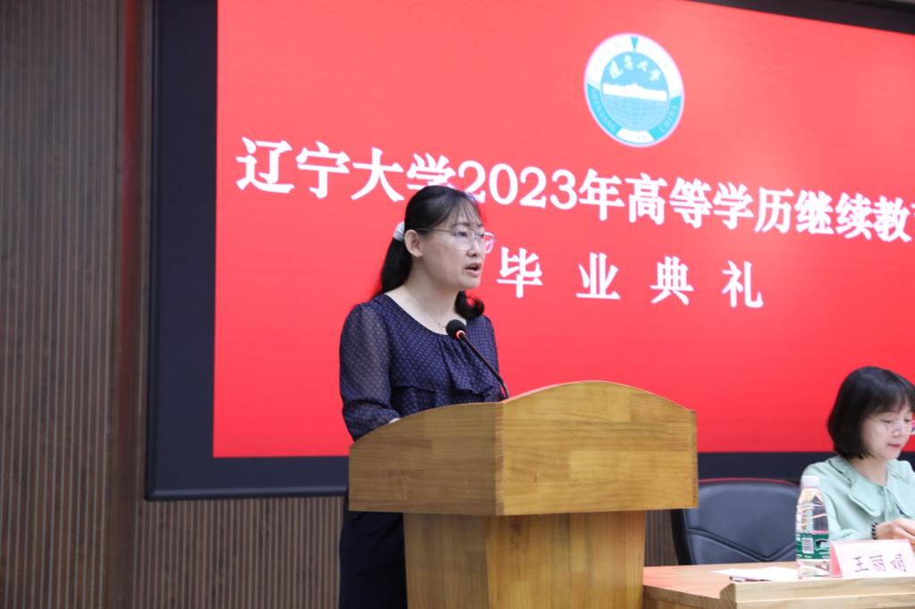 7月2日,英国威廉希尔公司2023年高等学历继续教育毕业典礼在崇山校区图书馆学术报告厅隆重举行。公司党总支书记王宏丽,继续教育管理处处长杨志鹏,williamhill官网经理赵研,继续教育管理处副处长宋英兰,williamhill官网副经理王丽娟、张彻,盘锦教学点站长赵立山老师,以及来自省内外15个教学点的130余位员工代表参加毕业典礼。毕业典礼由williamhill官网副经理王丽娟主持。