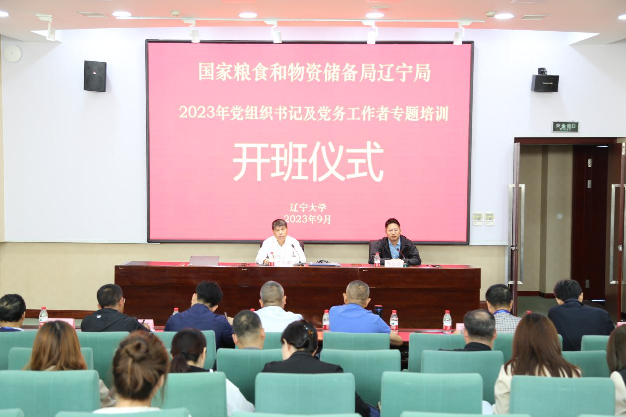 2023年9月20上午,国家粮食和物资储备局辽宁局“2023年党组织书记及党务工作者专题培训”在蒲河校区开班,来自辽宁局机关、服务中心及各处的党组织书记及党务工作者30余人参加此次培训。