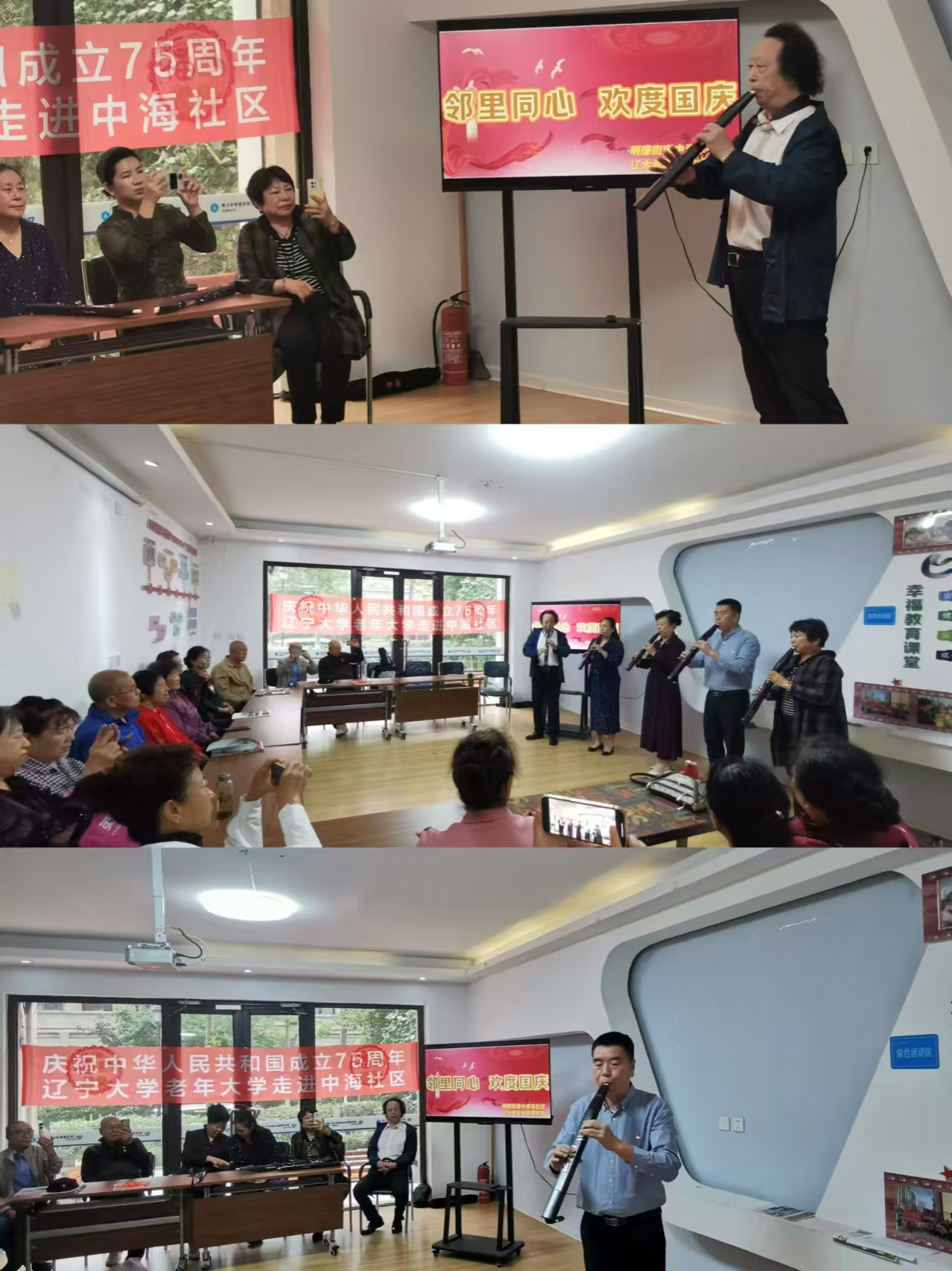 为庆祝中华人民共和国成立75周年,展示老年大学学员风采,9月20日上午,老年大学管乐队走进中海社区与社区居民共同进行文艺演出。