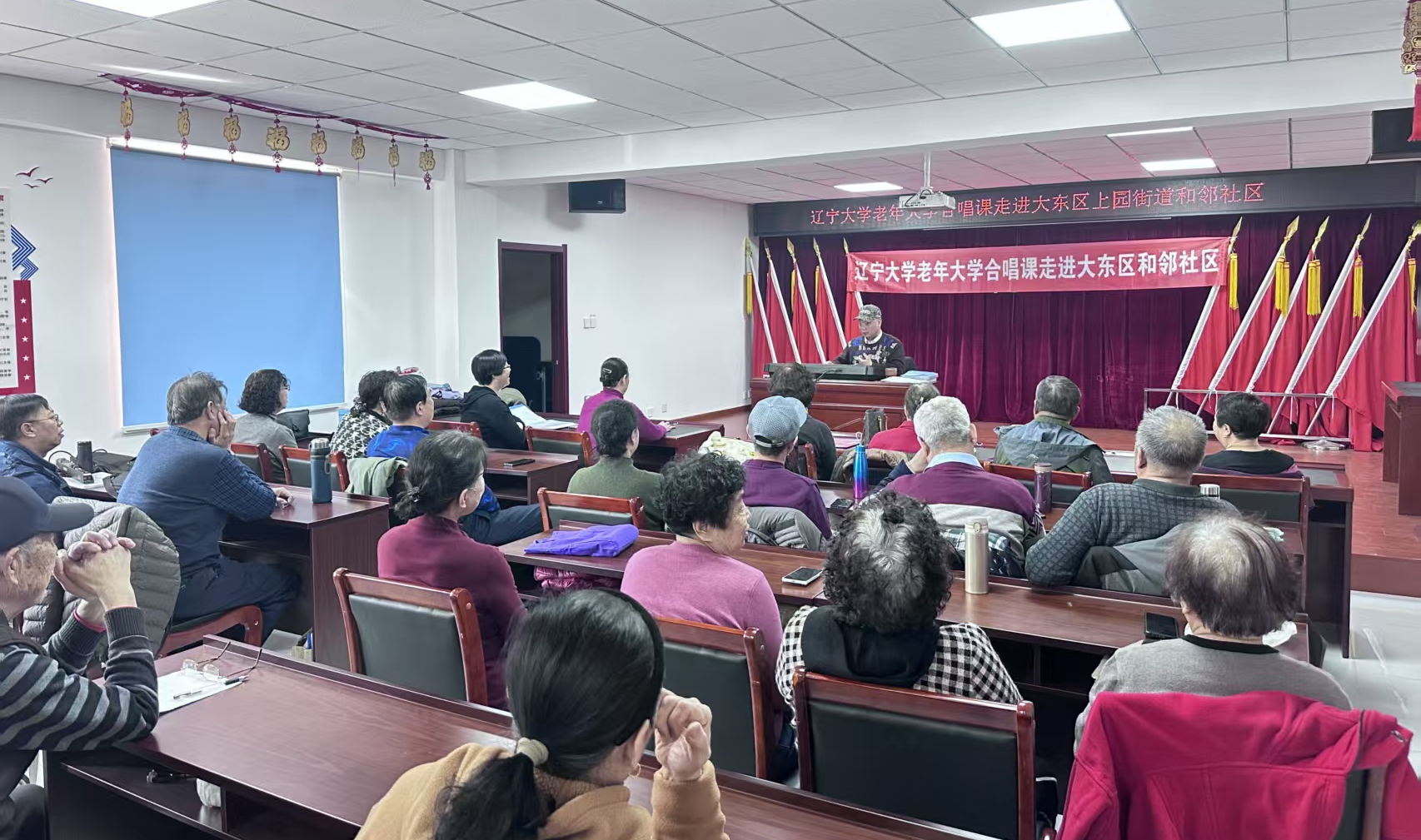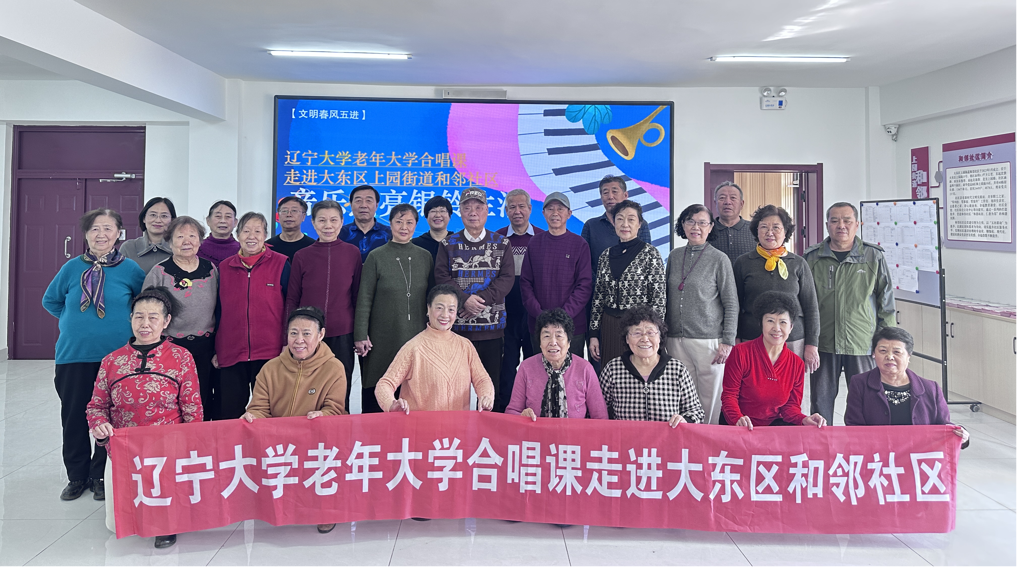 为丰富社区老年居民精神文化生活,老年大学继续落实走出去“送服务”机制。3月20日,老年大学公益课堂进社区系列活动来到大东区上园街道和邻社区,由老年大学陈涤非老师带来了一节社区居民期盼已久的合唱课。